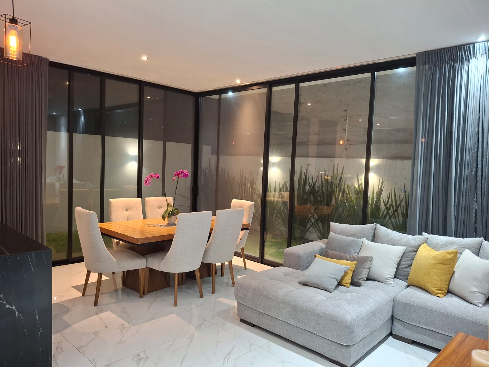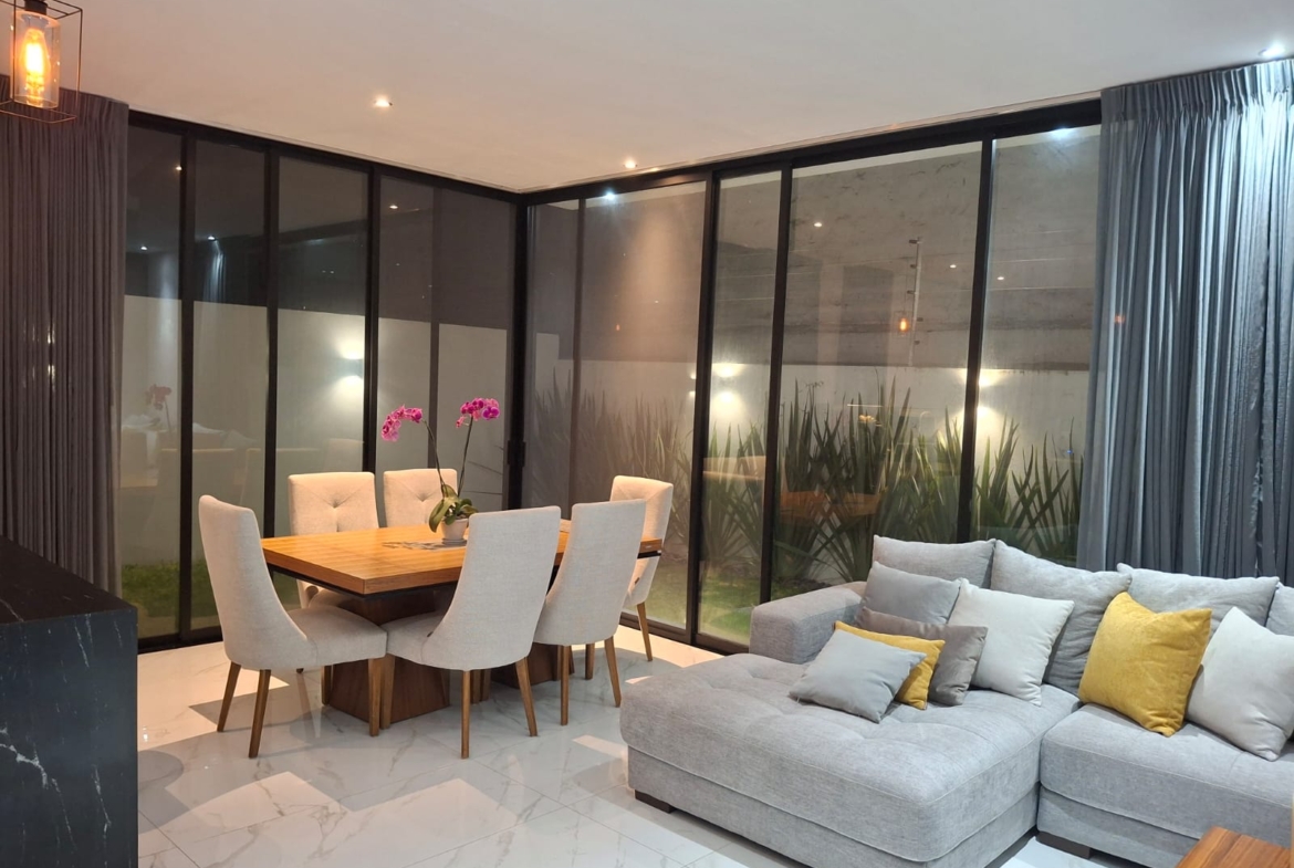 Espacios amplios e iluminados, la sala y comedor se integran con el jardín, creando un espacio perfecto para convivir.