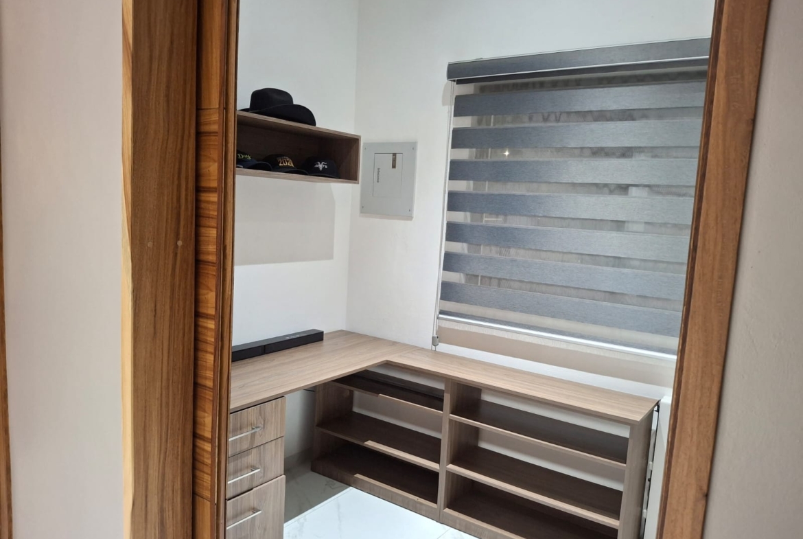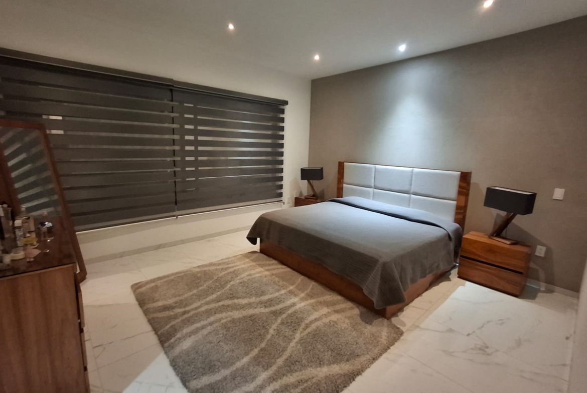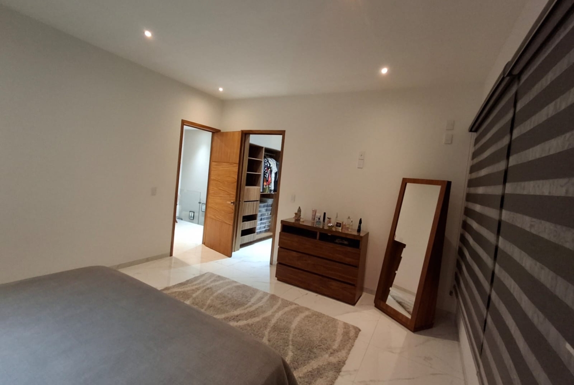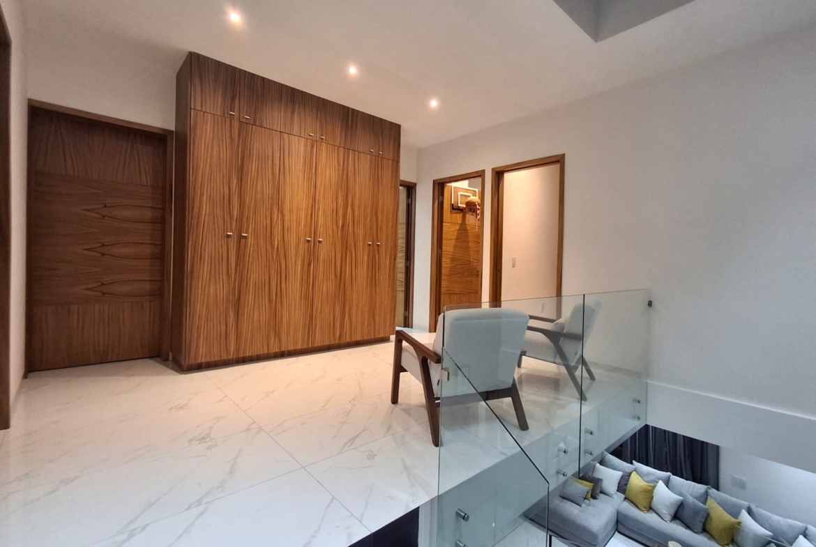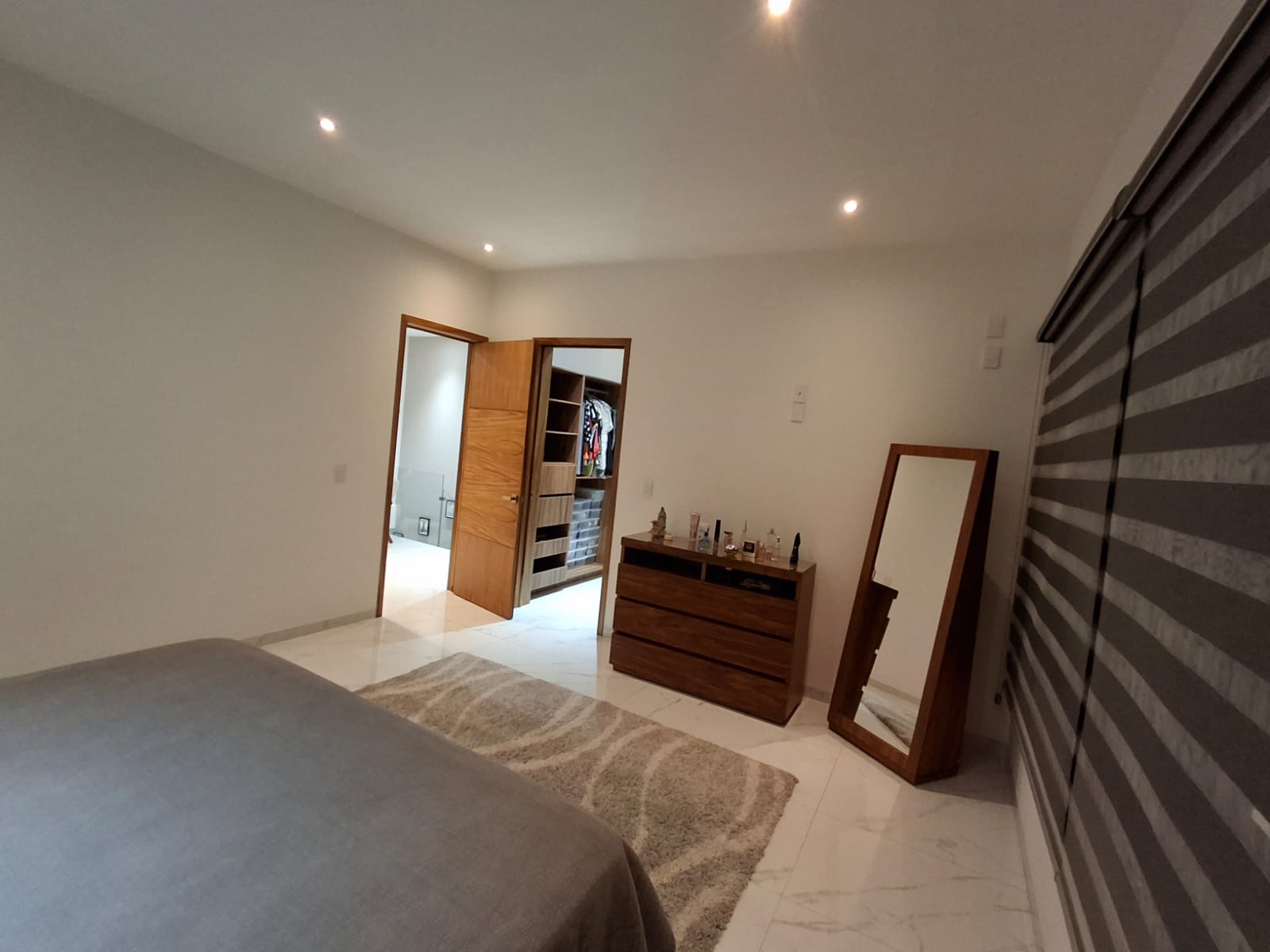 En planta alta 3 recamaras, la principal muy amplia con closet vestidor y baño completo con doble ovalin, cuarto de lavado, closet de blancos y 2 recamaras secundarias (una de ellas cuenta con A/A) comparten baño completo.