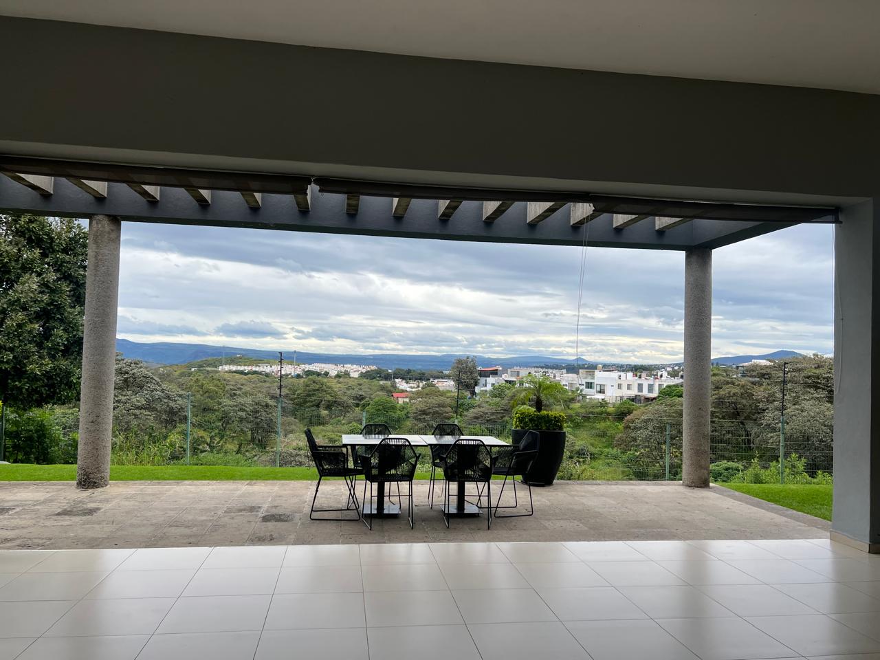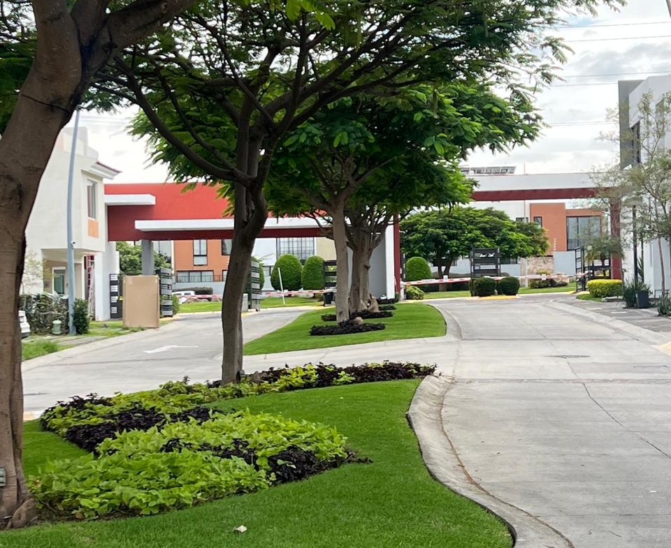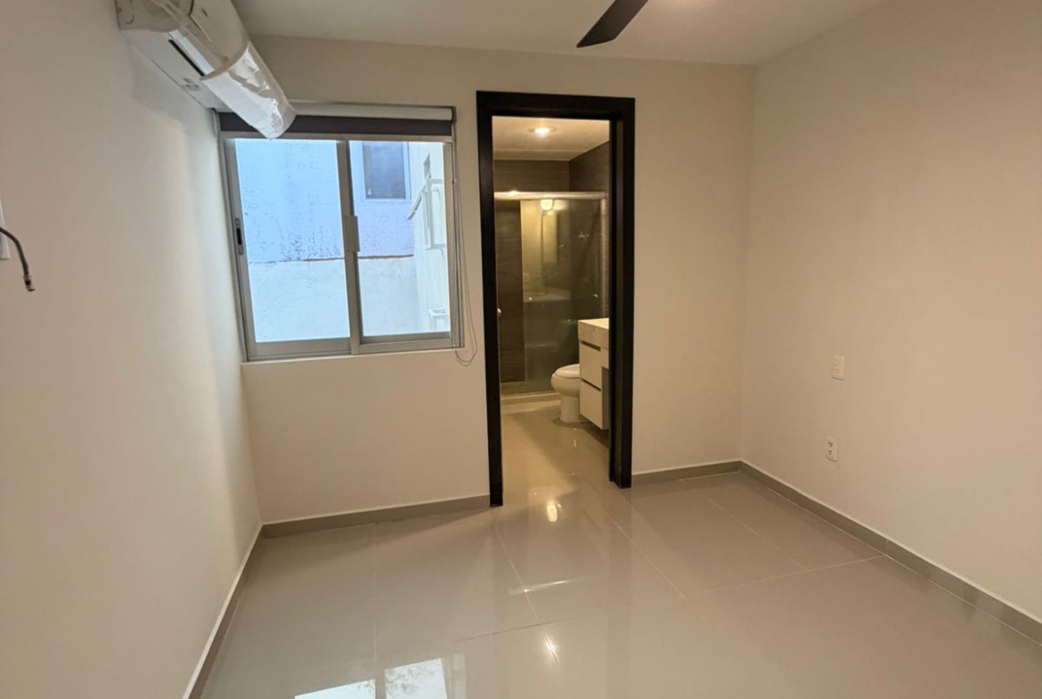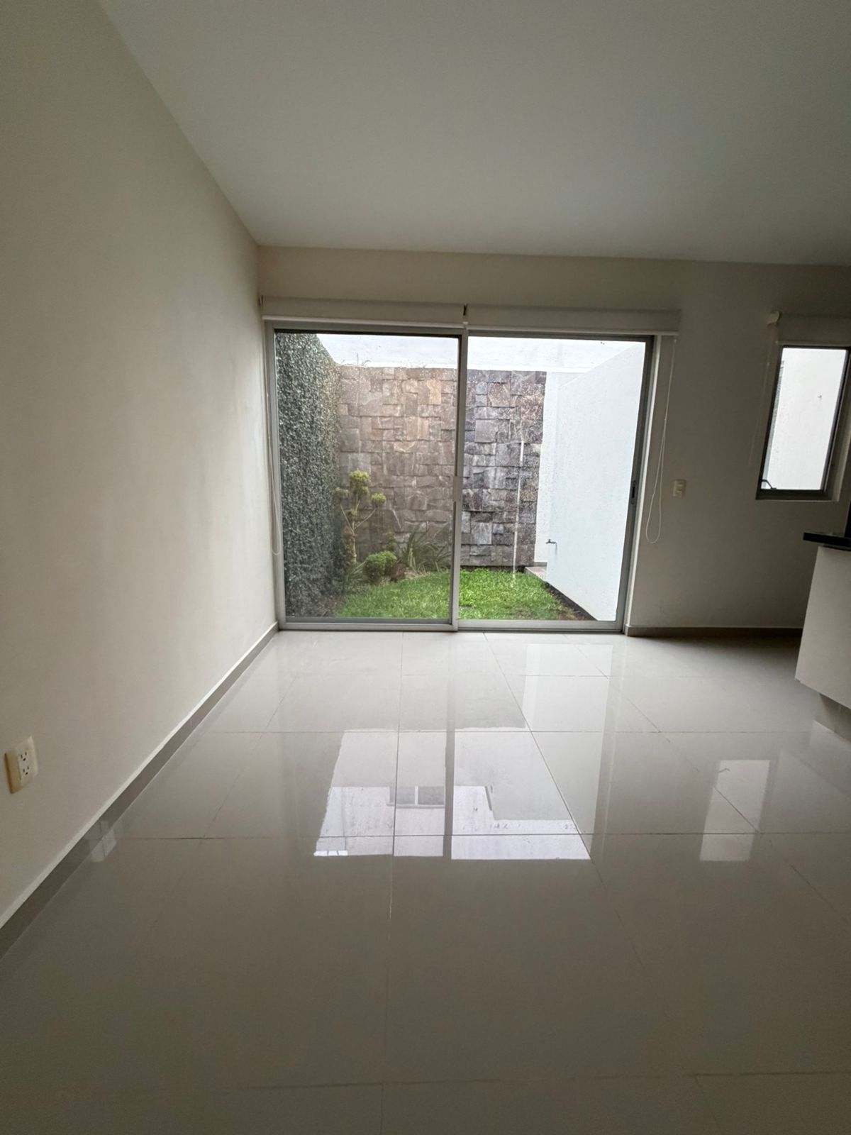 Cocina con barra cubierta de granito, recámara principal con baño y vestidor, la secundaría con closet y baño, la tercera con closet, todas cuentan con aire acondicionado amplio distribuidor con closet en planta alta, baños con cubierta de mármol, cristal en puertas, escalera con barandal de cristal, jardín interior, cuarto de lavado, vigilancia, áreas comunes, terraza, pequeña alberca.