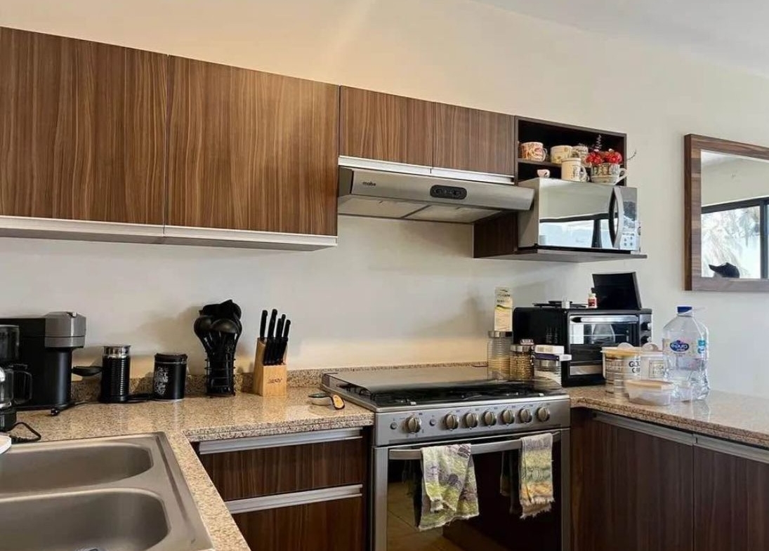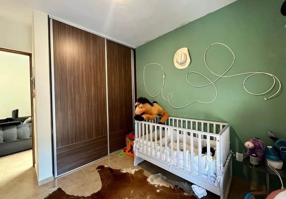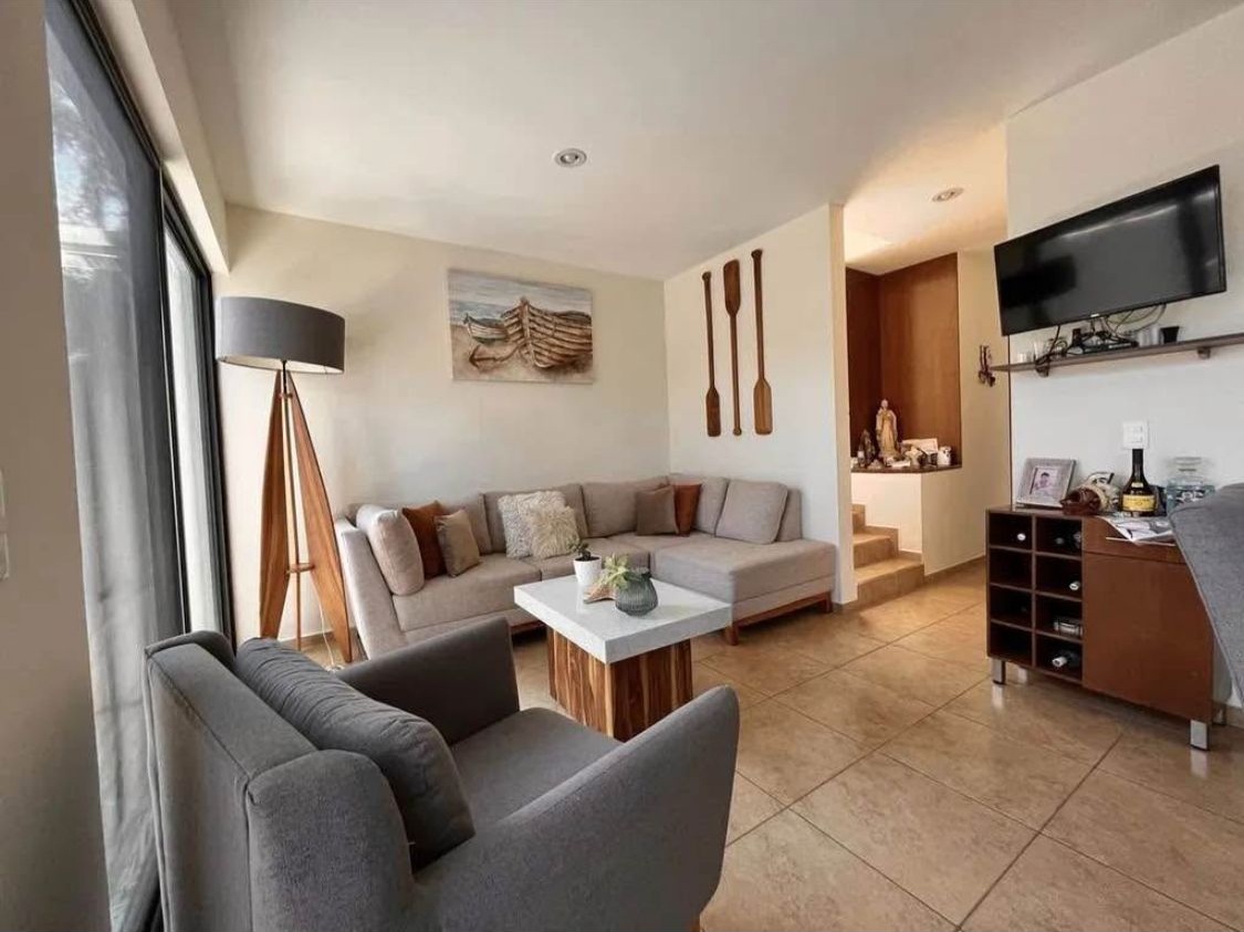 Cuenta con tres recámaras la principal con A/A y amplio vestidor, dos recamaras secundarias que comparten baños completo, jardín, cocina con barra desayunadora, amplia sala comedor.