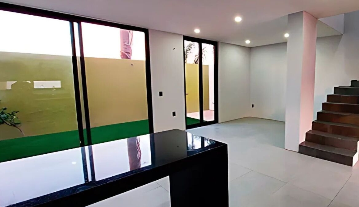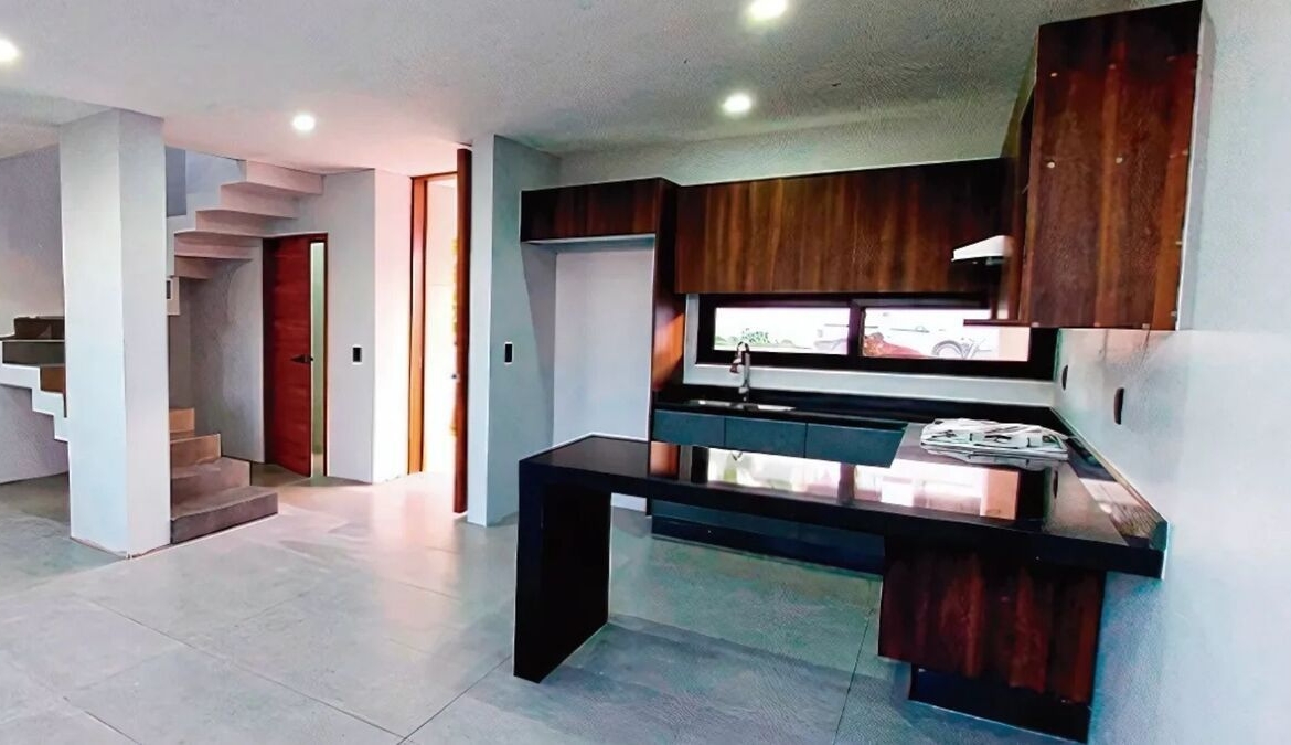 Cuenta con tres recámaras la principal con vestidor, dos baños completos, un medio baño, sala, comedor, cocina integral con barra, equipada con cubierta de granito, doble tarja, estufa, extractor de aire, jardín, cochera para dos autos, puerta principal en las residencia con chapa inteligente.