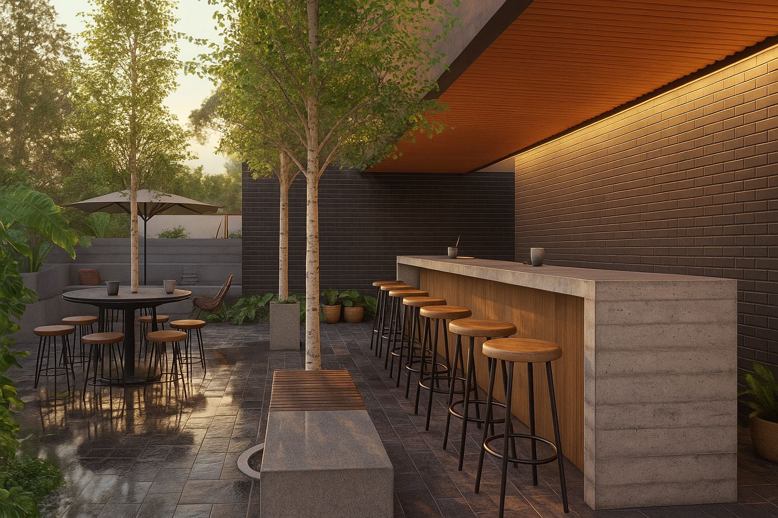 Los ladrillos aparentes, la madera natural y la herrería negra conviven en equilibrio perfecto, creando espacios