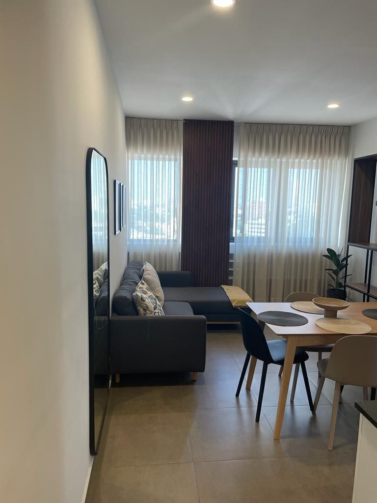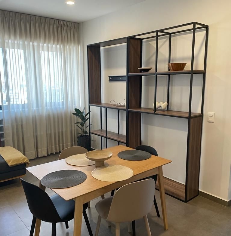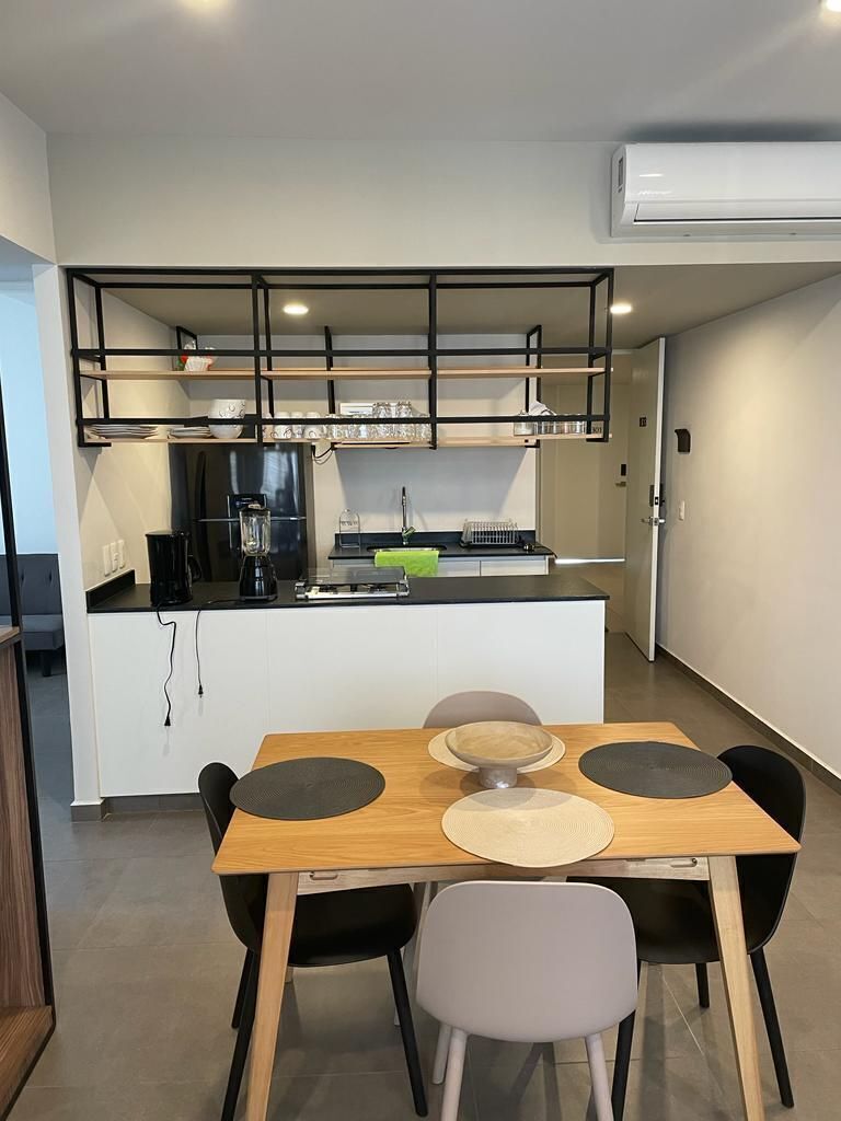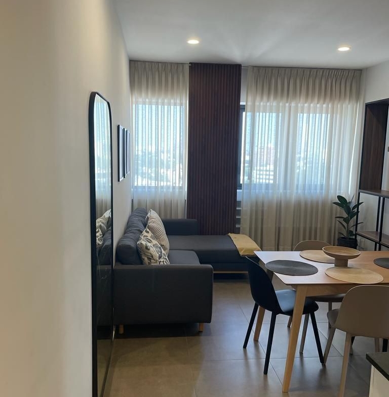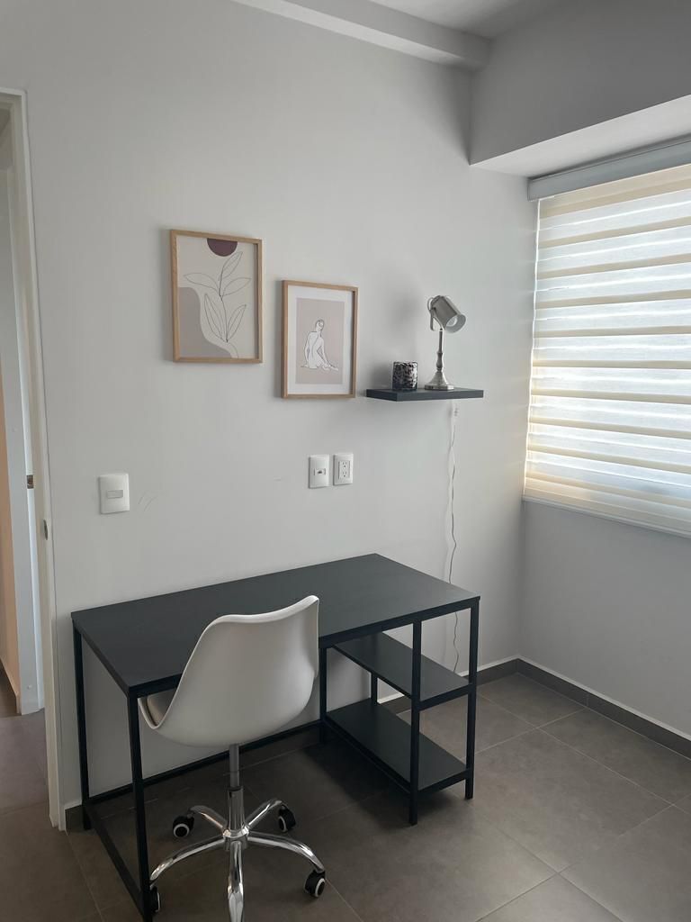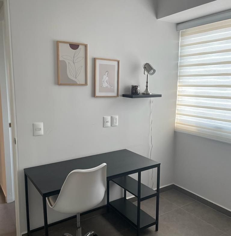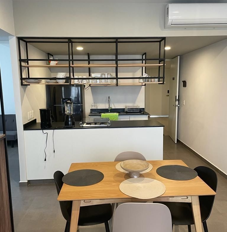 El departamento cuenta con 2 Recamaras, 1 Baño completo, Sala comedor, Cocina Integral con granito y barra desayunadora, AA en sala, comedor y recámara principal, Closet de lavado, 1 Estacionamiento techado. Incluye cortinas