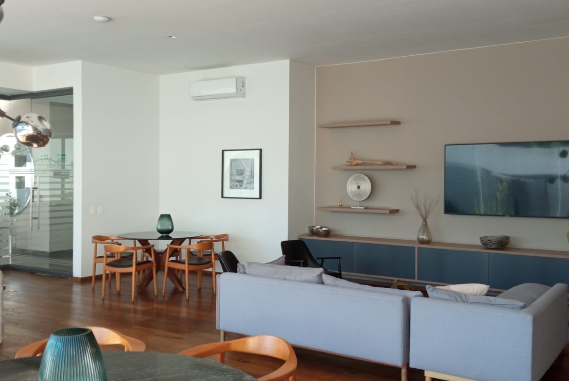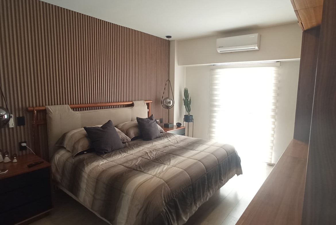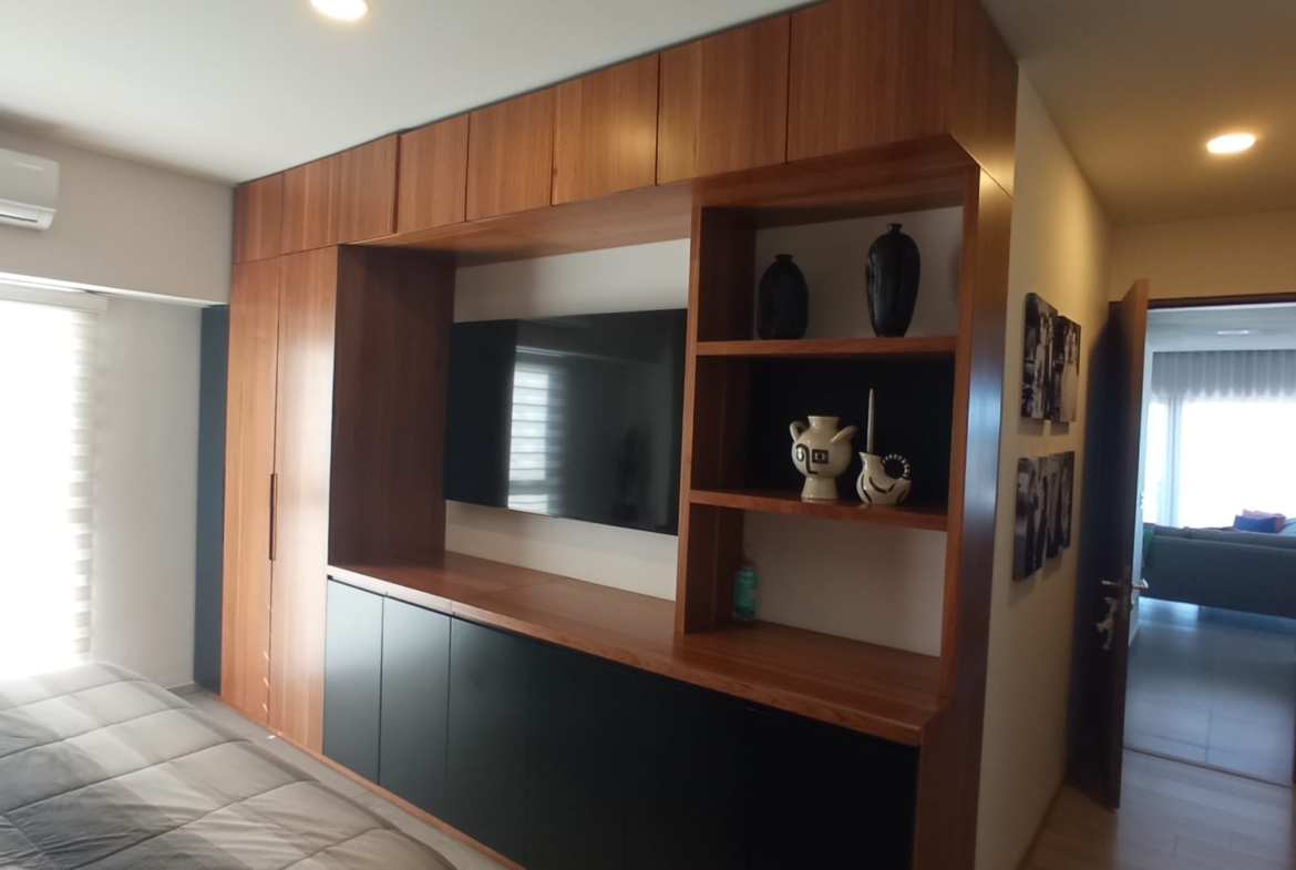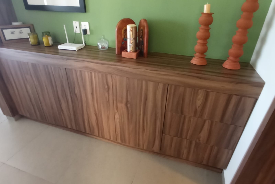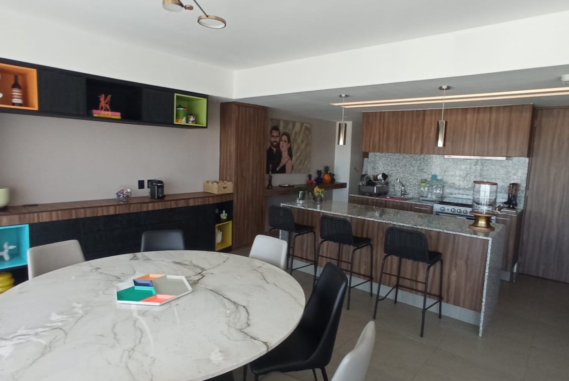 Amplio departamento con una vista espectacular, dos recámaras con opción a 3er recámara, acondicionado con muebles empotrados, mueble de TV en recaámara principal, muro de lambrin recámara principal, mueble librero en área del comedor, mueble en pasillo antes de ingresar a las recámaras, cortinas en recámaras y sala comedor, lamparas colgantes en sala, comedor, aire acondicionado dos recámaras y sala comedor, azulejo en bodega, alacena adicional azulejeada, todo esto con valor superior a los $500,000 pesos.