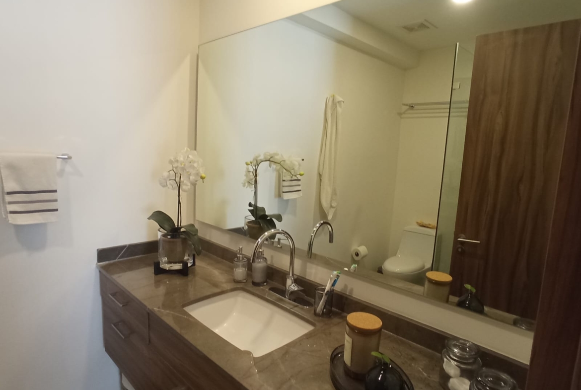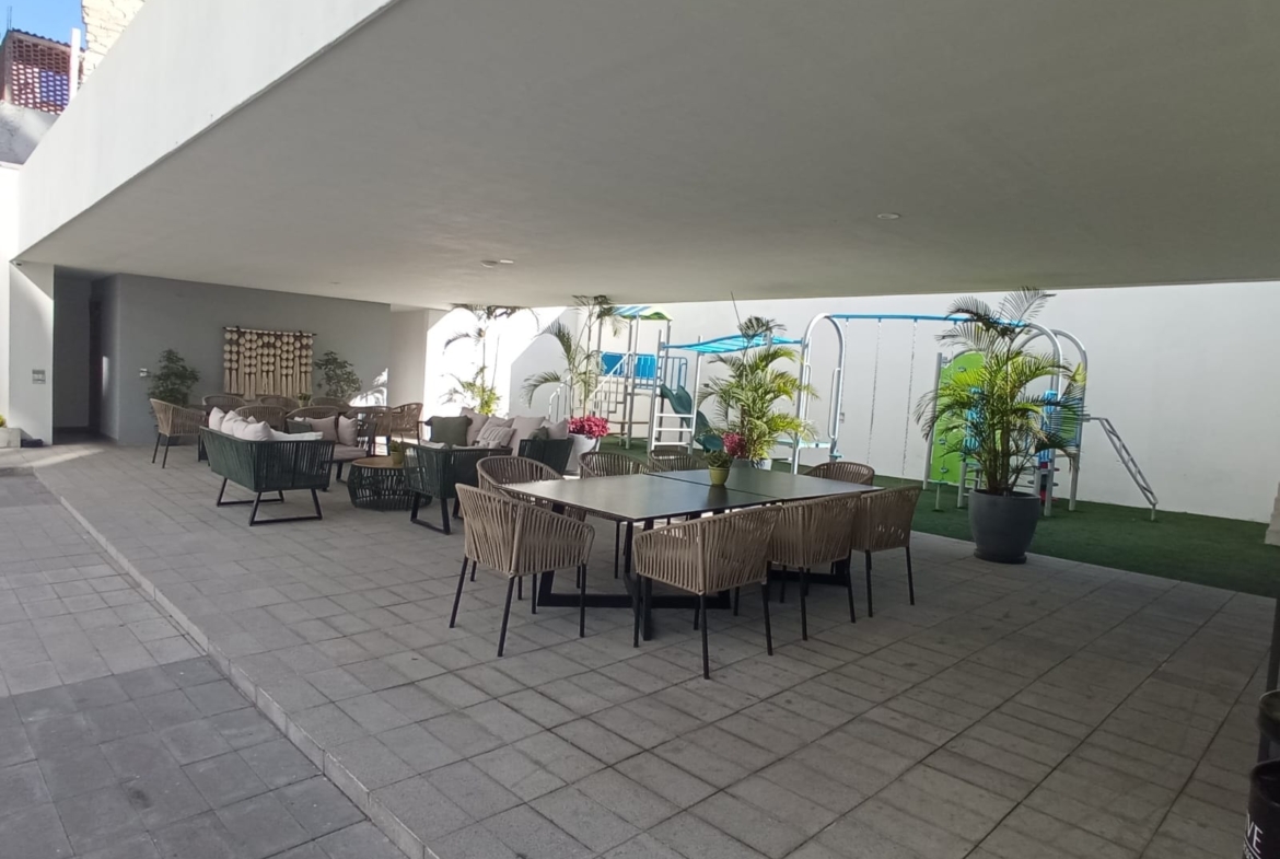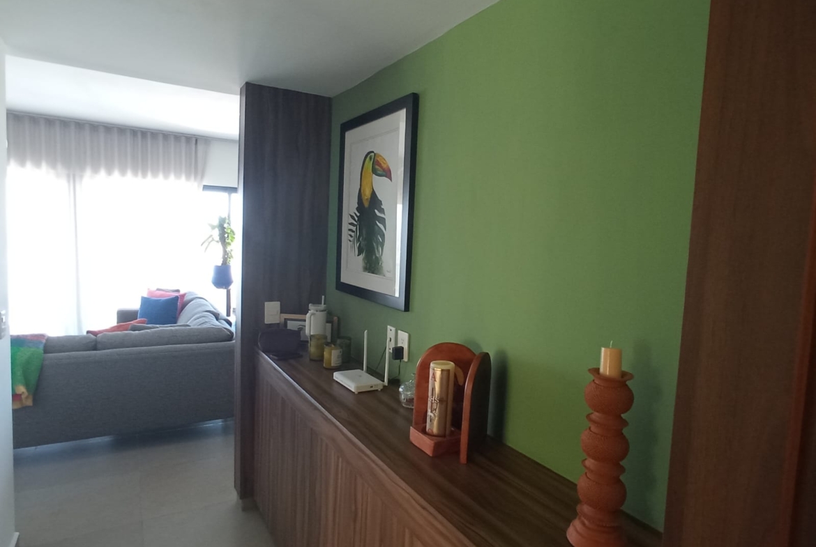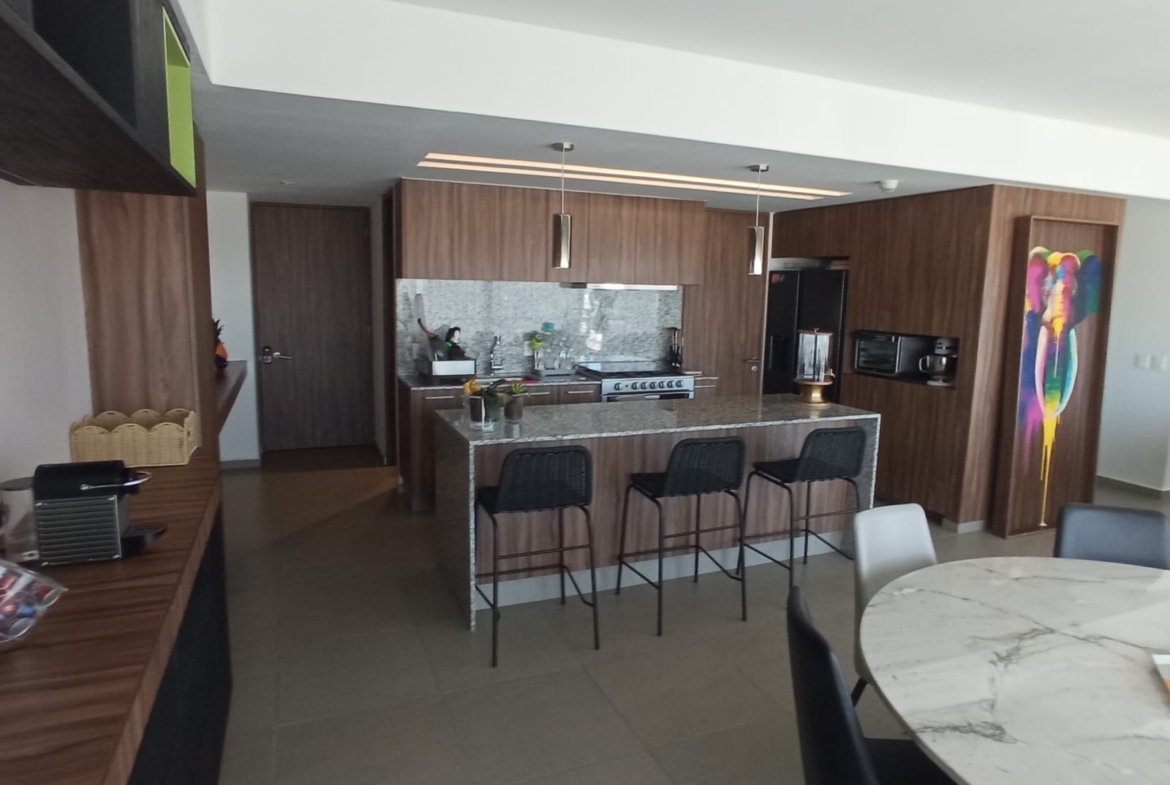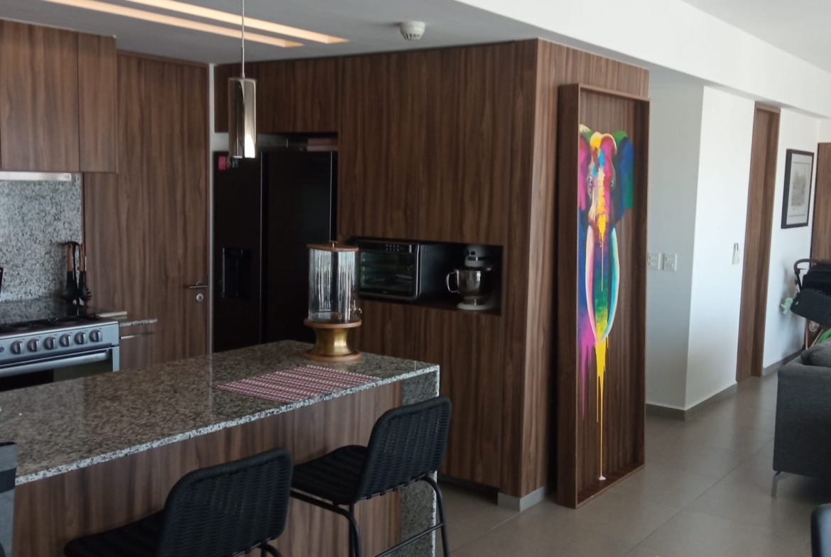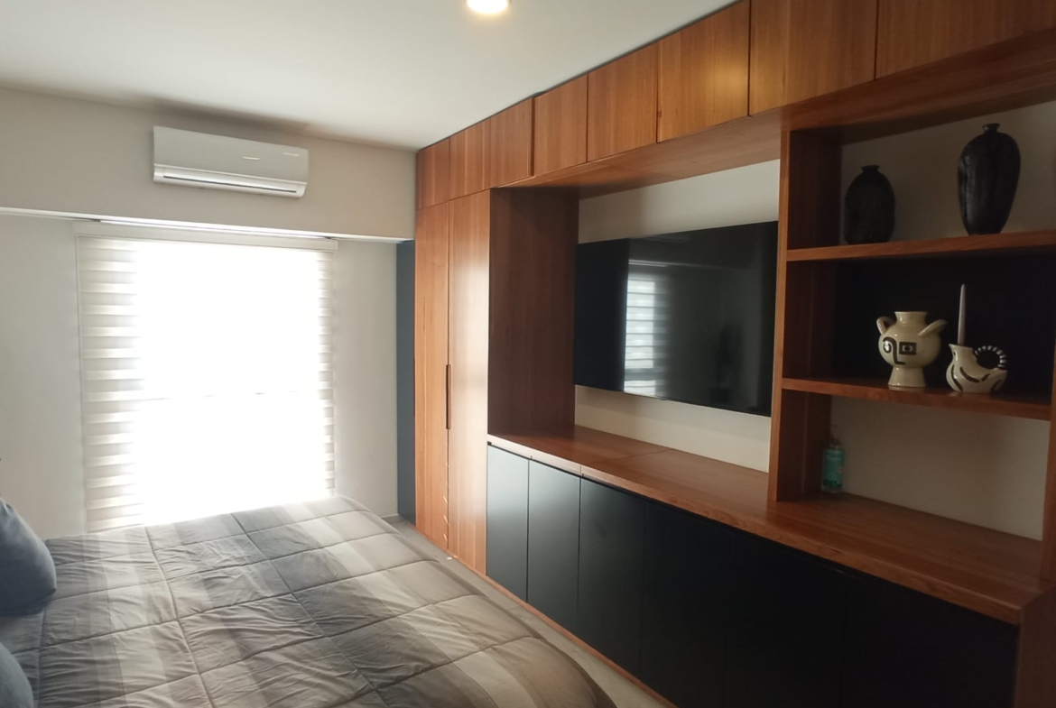 Amplio departamento con una vista espectacular, dos recámaras con opción a 3er recámara, acondicionado con muebles empotrados, mueble de TV en recaámara principal, muro de lambrin recámara principal, mueble librero en área del comedor, mueble en pasillo antes de ingresar a las recámaras, cortinas en recámaras y sala comedor, lamparas colgantes en sala, comedor, aire acondicionado dos recámaras y sala comedor, azulejo en bodega, alacena adicional azulejeada, todo esto con valor superior a los $500,000 pesos.