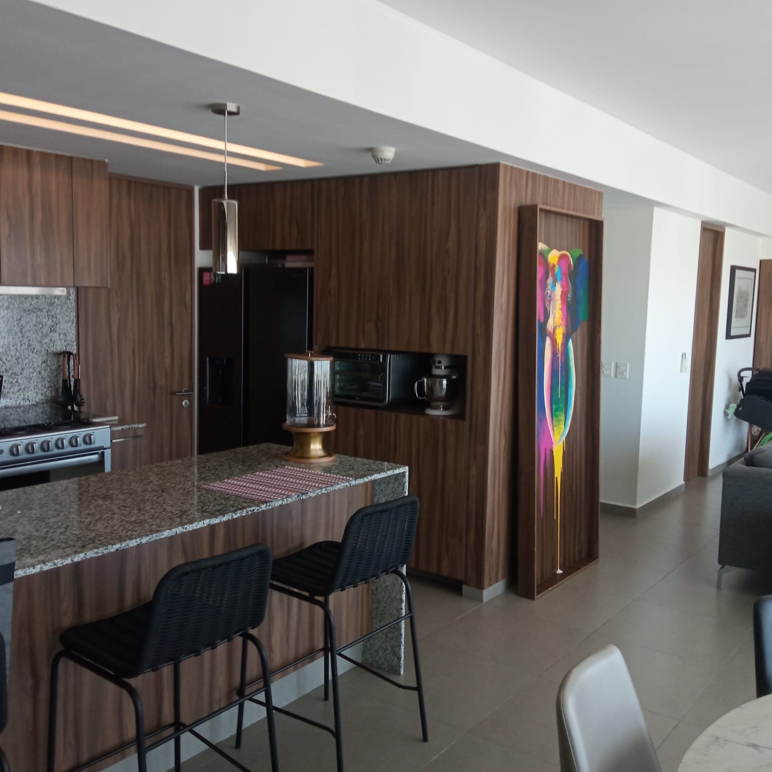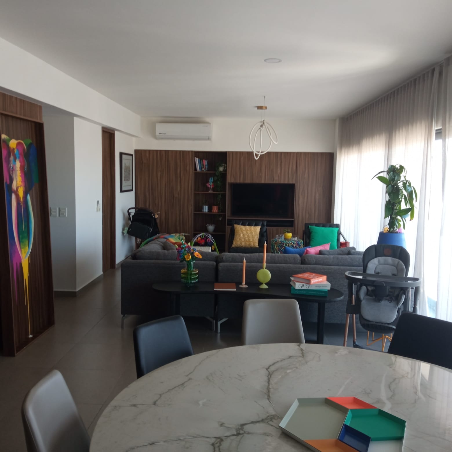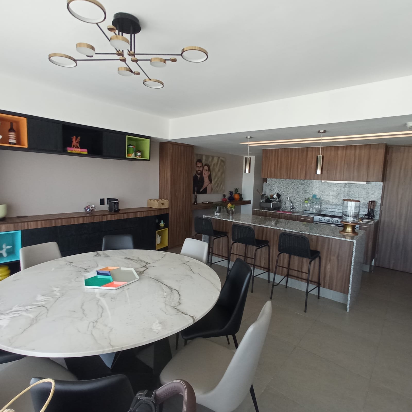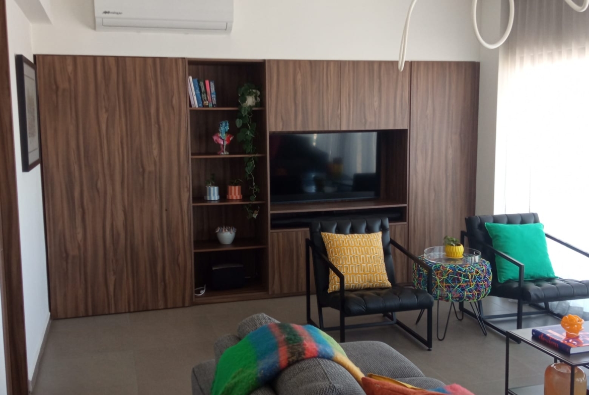Amplio departamento con una vista espectacular, dos recámaras con opción a 3er recámara, acondicionado con muebles empotrados, mueble de TV en recaámara principal, muro de lambrin recámara principal, mueble librero en área del comedor, mueble en pasillo antes de ingresar a las recámaras, cortinas en recámaras y sala comedor, lamparas colgantes en sala, comedor, aire acondicionado dos recámaras y sala comedor, azulejo en bodega, alacena adicional azulejeada, todo esto con valor superior a los $500,000 pesos.