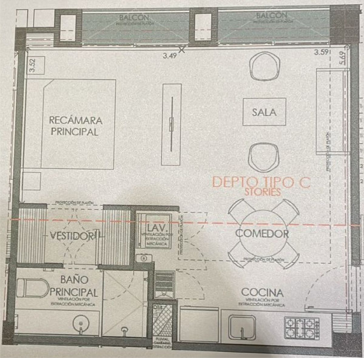 El departamento cuenta con 2 recámaras (la principal con baño), 2 baños, sala, comedor, cocina, área de lavado, balcón en las recámaras y sala.