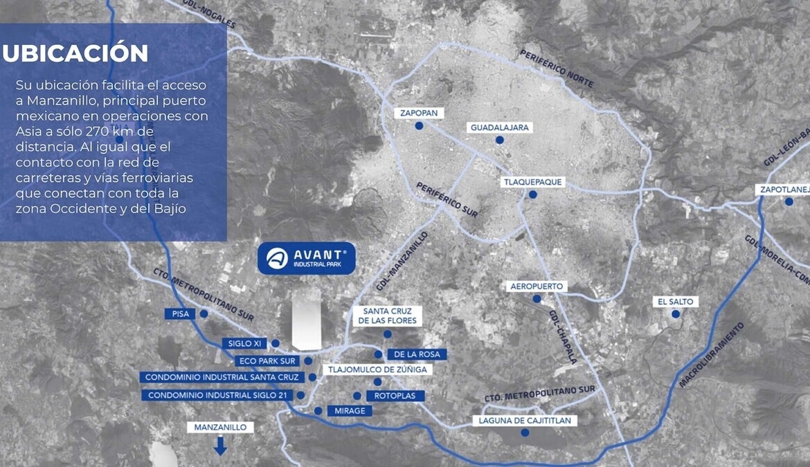 Su ubicación facilita el acceso a Manzanillo, principal puerto mexicano en operaciones con Asia a solo 270kmde distancia. Al igual que el contacto con la red de carreteras y vías ferroviarias que conectan con toda la zona occidente y del Bajío.