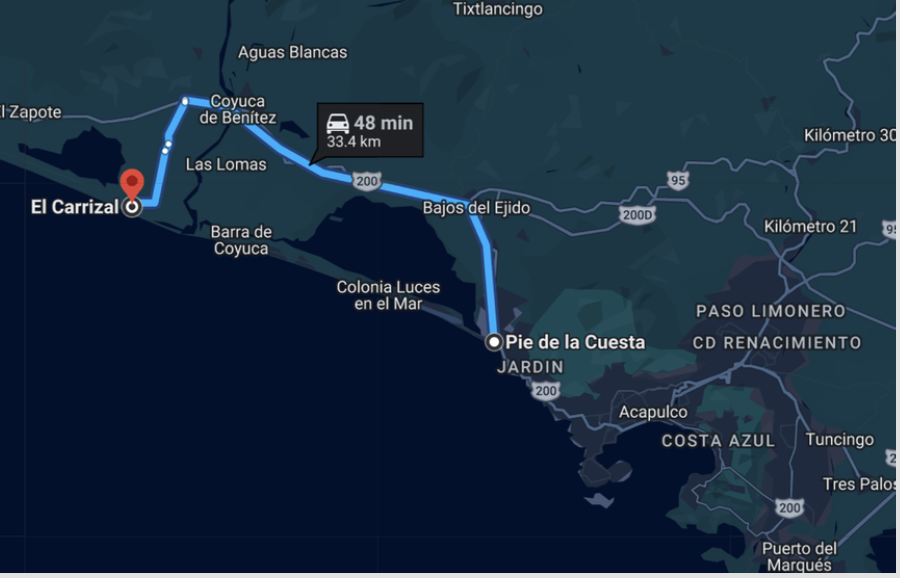 Tan solo a 30 kms de la playa Pie de la Cuesta. Con un tiempo de viaje en automóvil de aproximadamente 50 minutos desde Acapulco.